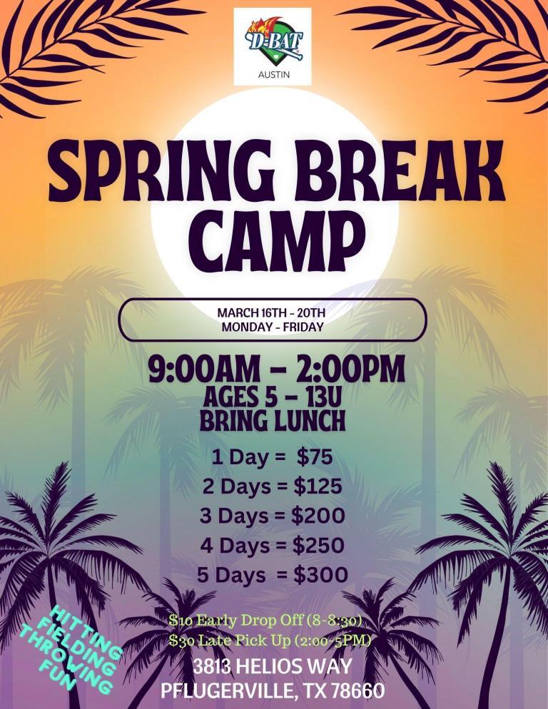 D-BAT Austin we host more than 50 Camps, Clinics & Classes each year providing a great opportunity for players to improve while having fun at the same time!